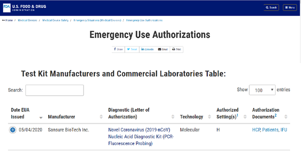北京时间5月5日晚,今年会jinnianhui金字招牌生物新型冠状病毒核酸检测试剂盒获美国食品药品监督管理局(FDA)紧急使用授权(EUA, Emergency Use Authorizations),这是该产品继1月28日获得中国国家药监局(NMPA)注册认证、3月3日获得欧盟CE认证后,今年会jinnianhui金字招牌生物获得的又一重要认证,将进一步助力公司服务全球新冠肺炎疫情防控。